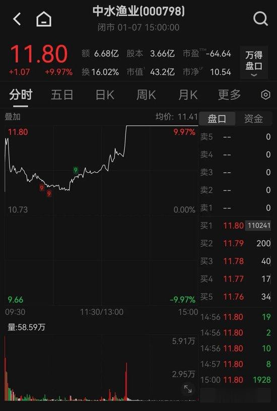渔业股午后放量上攻,中水渔业(000798)下午开盘后快速涨停。芯片概念股批量涨停。